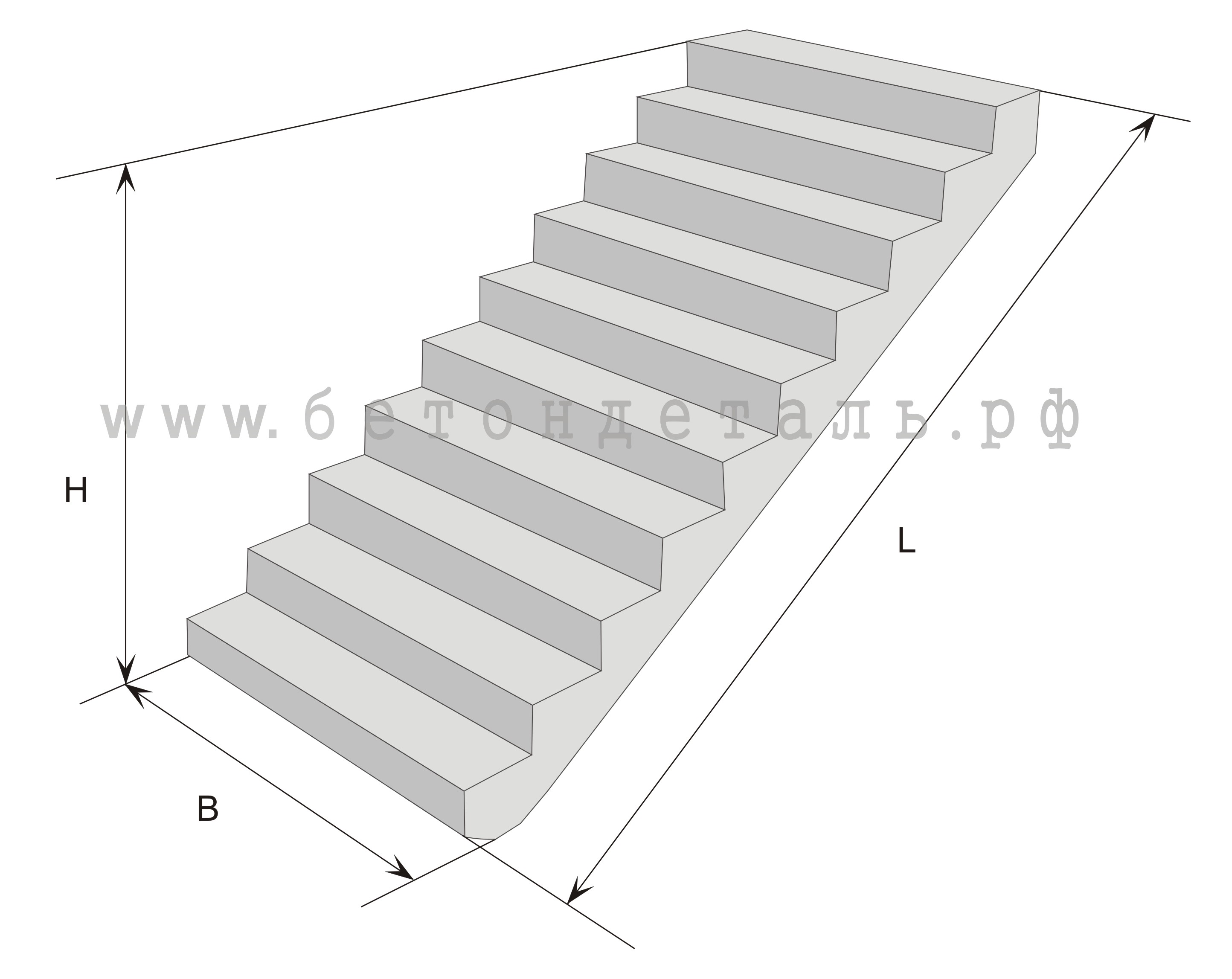 В процессе изготовления железобетонных ступеней ЛСВ применяется высококачественный бетон класс В15- В25. Бетон обладает высокими качественными свойствами, и имеют высокие показатели по прочности, водонепроницаемости и морозоустойчивости (F50). Бетонные ступени являются надежными, прочными и огнеупорными изделиями. Ступени ЛСВ не подвержены деформации и образованию трещин.