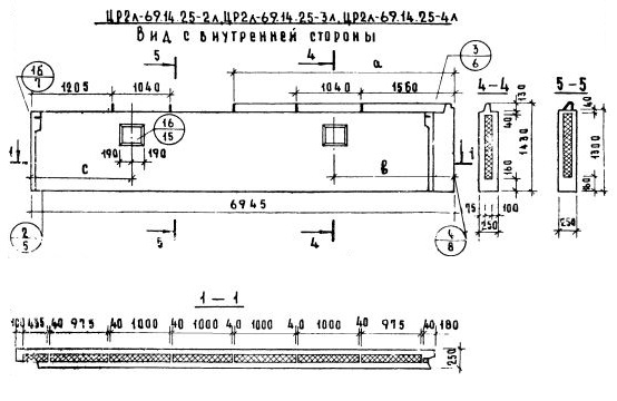 Серия 1.117-9    Панели групп ЦР1, ЦР2, ЦР4, ЦР5  толщиной 250 мм.
